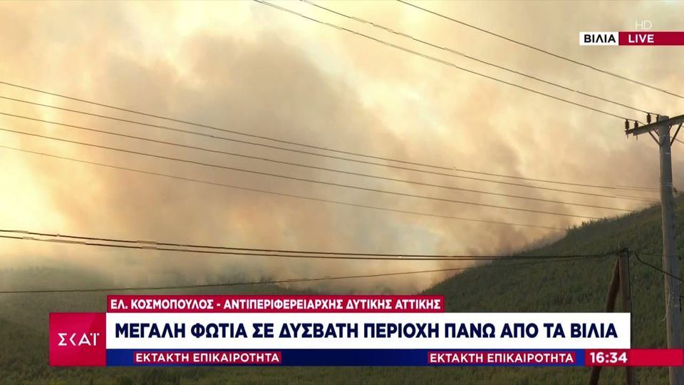Imukyklbxt5dbm from www.zougla.gr Στη μάχη για την πυρκαγιά στα βίλια μπήκαν πριν από λίγα λεπτά και τα δύο ρωσικά μεγαθήρια «ιλιούσιν» χωρητικότητας 40 τόνων, που πλέον κάνουν ρίψεις νερού πάνω στα μέτωπα στο όρος. Δύσκολες ώρες περνούν οι κάτοικοι στα βίλια αττικής, καθώς με κομμένη την ανάσα βλέπουν το πύρινο θηρίο να πλησιάζει προς τα σπίτια τους. Σε εξέλιξη βρίσκεται η πυρκαγιά που ξέσπασε χθες στα βίλια. Βελτιωμένη φαίνεται να είναι η εικόνα της φωτιάς στα βίλια, με τις πυροσβεστικές δυνάμεις να δίνουν μάχη με τις συνεχείς αναζωπυρώσεις. Μαίνεται η φωτιά στα βίλια, ενώ το πύρινο μέτωπο μεγαλώνει με αποτέλεσμα να υπάρχει εντολή εκκένωσης και άλλων οικισμών. Τα δύο ρωσικά αεροσκάφη έρχονται να ενισχύσουν την δύναμη κρούσης του μηχανισμού πυρόσβεσης και ειδικότερα τα εναέρια μέσα, που έχουν ήδη ενισχυθεί. Σε πλήρξη εξέλιξη βρίσκεται η φωτιά στα βίλια, με τις επίγειες δυνάμεις της πυροσβεστικής να ενισχύονται κατά τη διάρκεια της νύχτας. Εκτροπή εναέριων πυροσβεστικών μέσων προς την πυρκαγιά στα βίλια.